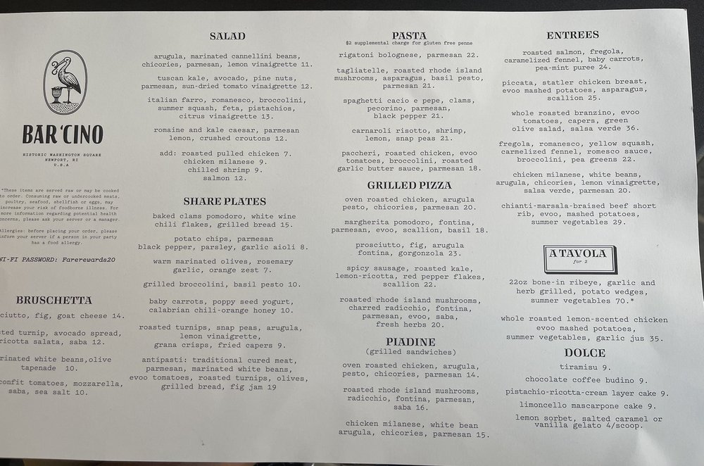 Overall, Bar ‘Cino stands out for its delectable Italian dishes, vibrant atmosphere, and attentive service. Whether you're in the mood for a casual meal or a special occasion, this Italian bar is a must-visit for those looking to experience the best of Italian cuisine in Newport, RI.